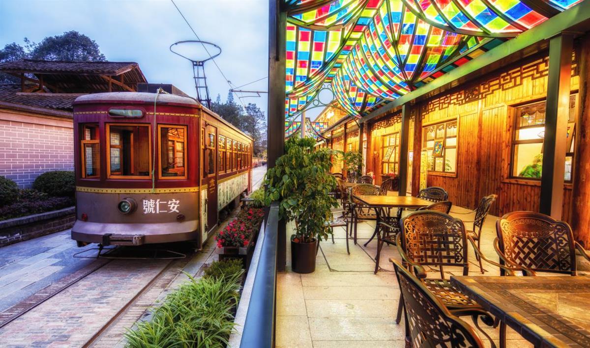 从刘氏庄园博物馆或者建川博物馆聚落出来,向西步行前往公馆老街,将经过华侨城文创园。