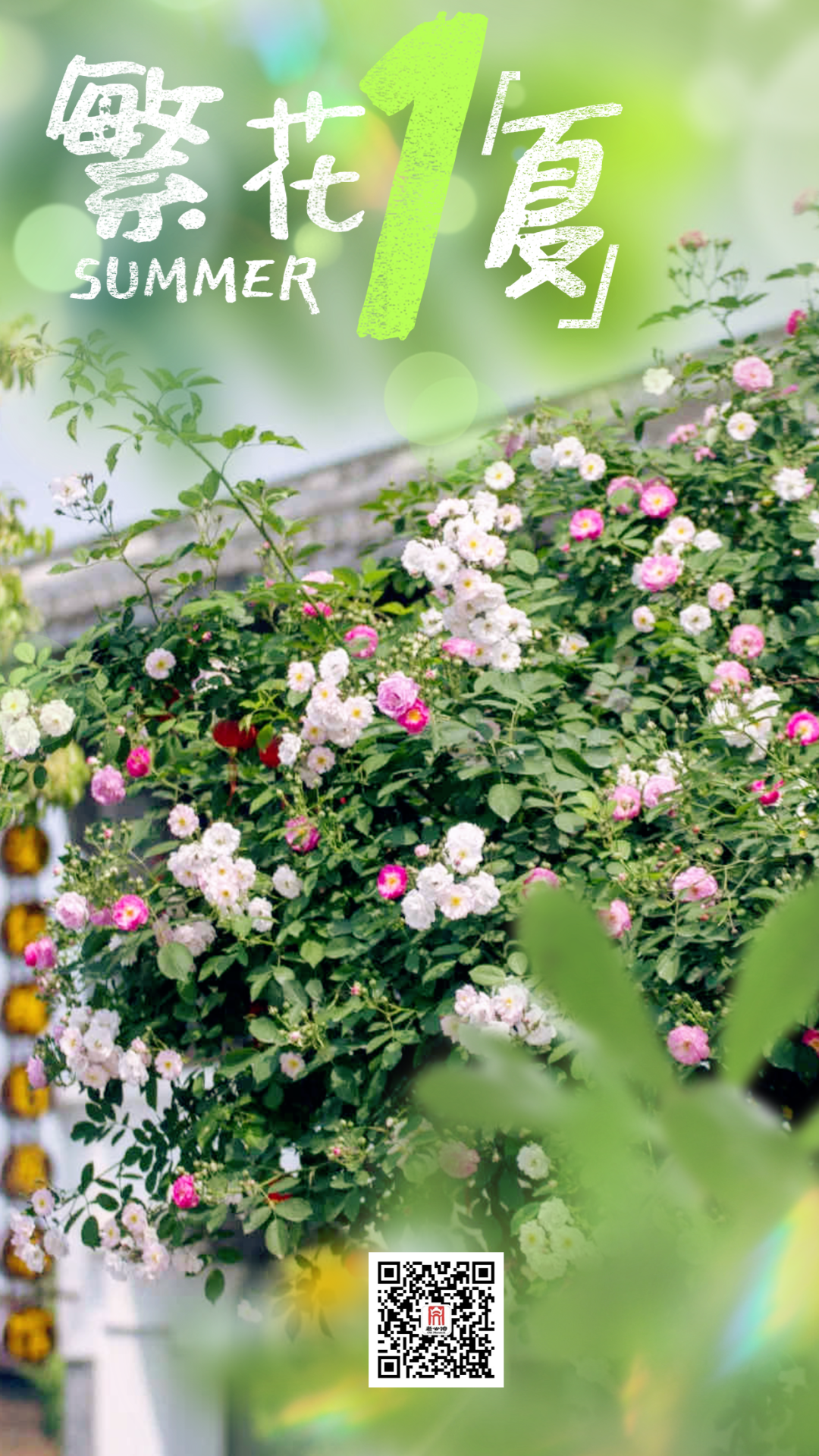 赤日清风,荫荫夏木下的别院,翠绿枝蔓爬上灰边白底的拱门,别有一番静谧清凉。