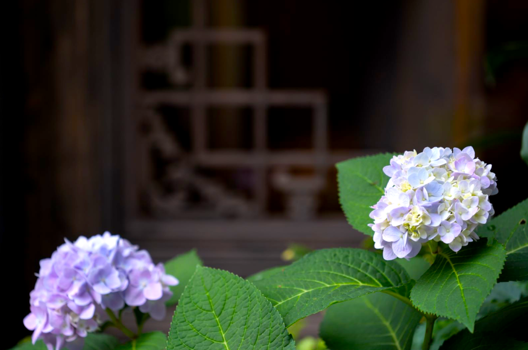 最撩人心扉的是那蓝紫的绣球,静静矗立在百年院落背阴的一角,像极了旧时大户人家低调雅致的风情。