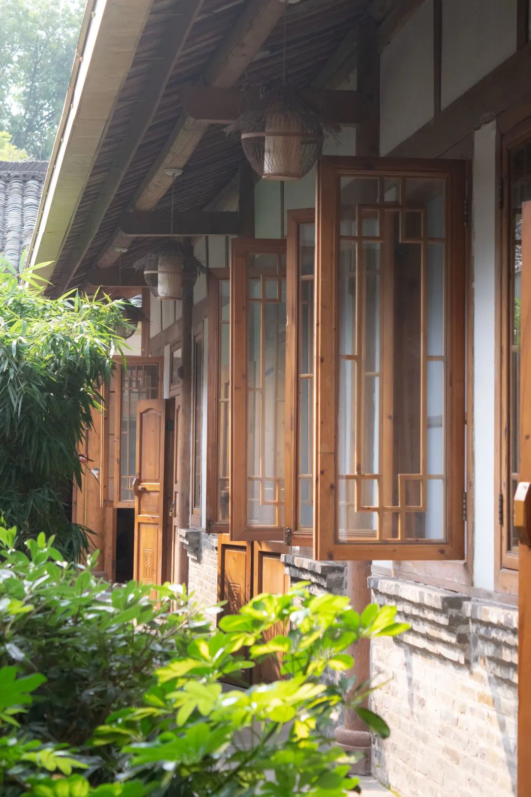 你可以坐于乐自能公馆木椅上翻阅一本书籍,看一看典型的川西民居建筑风格,在光影和“薄荷绿叶”之间,静静享受午后的视觉降温。