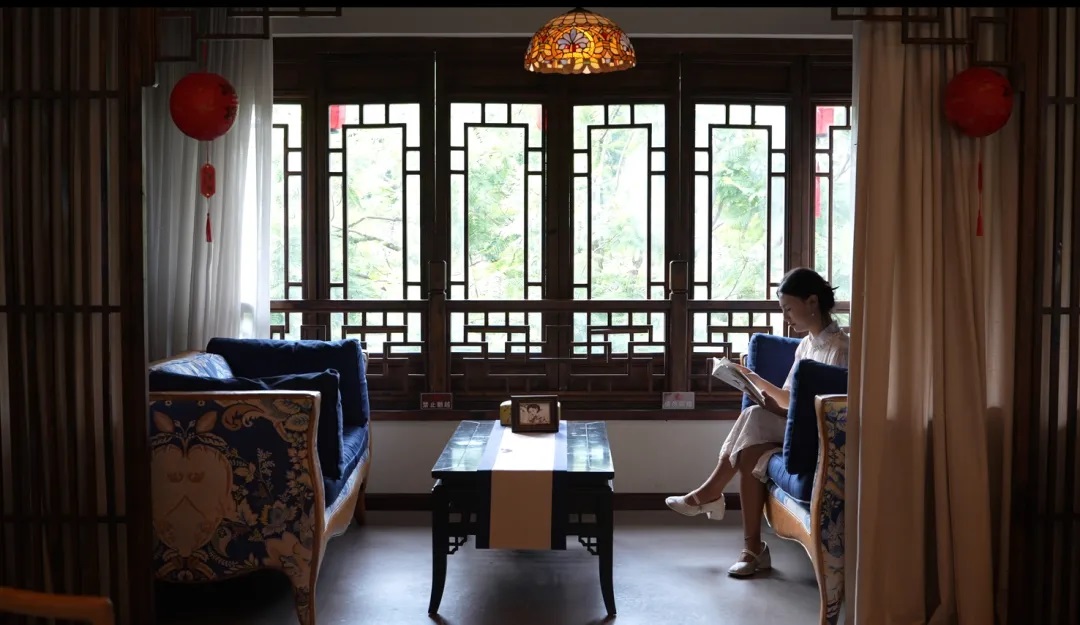 走进公馆,轻倚在雕花窗棂边,或是寻处庭院木椅歇歇脚。