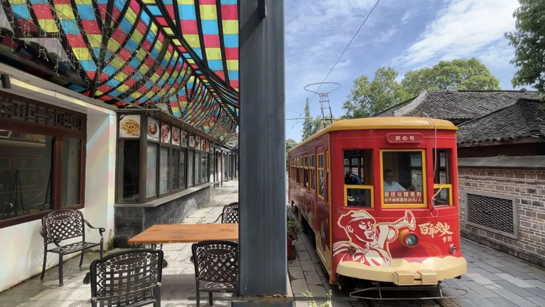 安仁古镇的铛铛车不仅是交通工具,更是拍照的小道具。