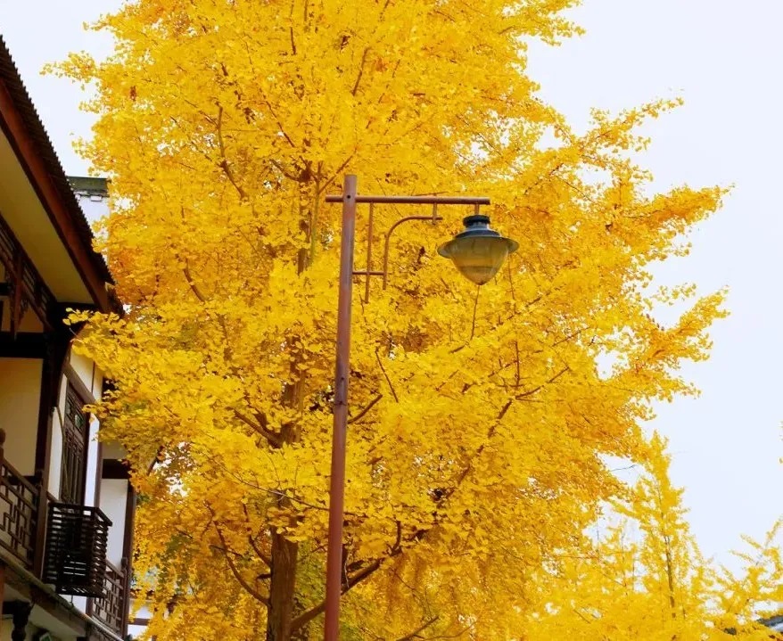 此时没有喧嚣的人声,只有银杏与古镇的私语,那一片金黄不张扬,不刻意,却将初冬的韵味揉进了古镇的肌理,让每一寸时光都变得柔软而绵长。