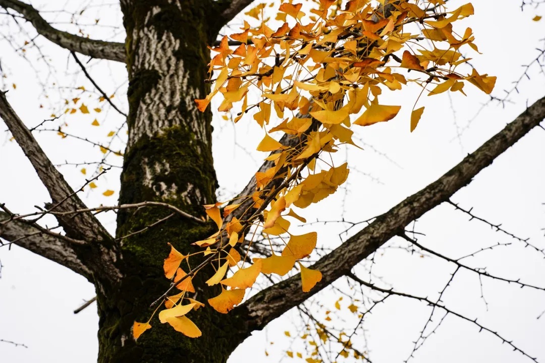 起初是零星的试探,叶尖晕开浅淡的鹅黄,像宣纸上未干的墨,在青灰的屋檐下悄悄洇染。不多时,整树的叶片便褪去青涩,换上澄澈的黄。