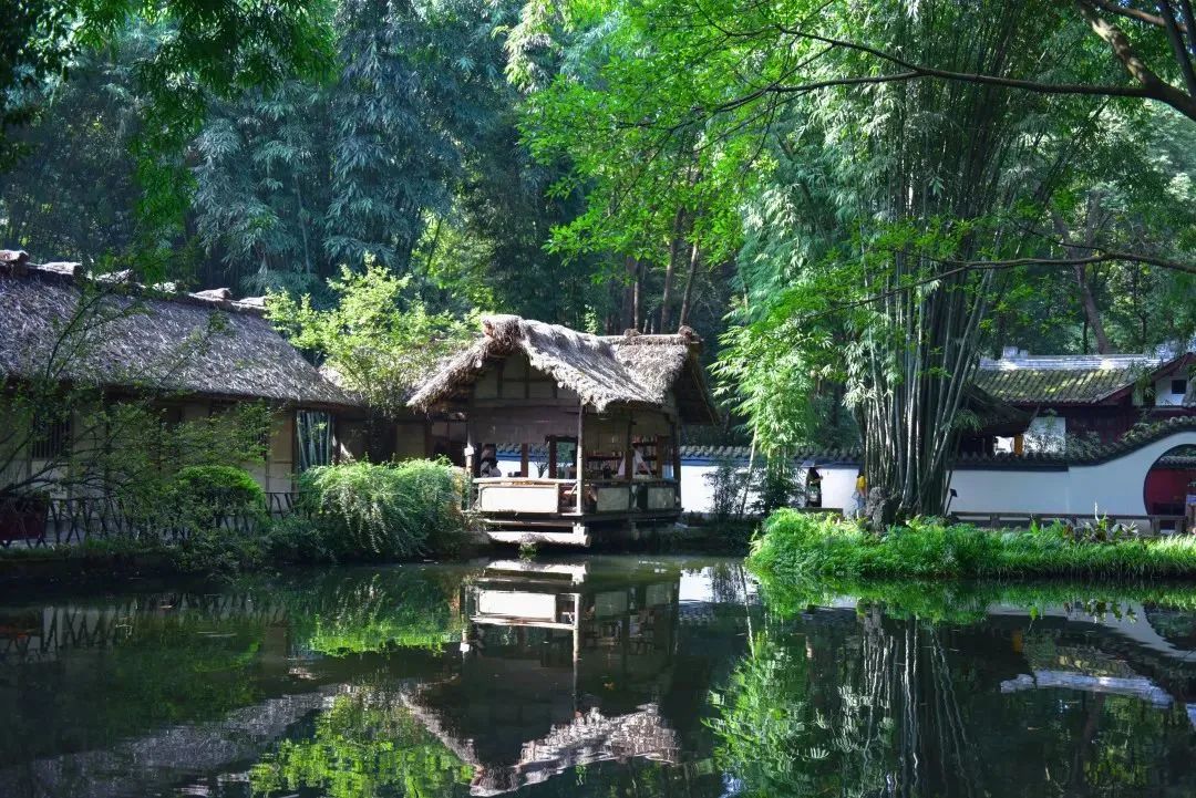 而浣花草堂,从刚建时的“诛茅初一亩”,到如今占地八百亩的名胜古迹,经一代诗圣之熏陶,历数代文人之朝拜,其每一处风景都显露着中国传统文化醇厚绵长的韵味