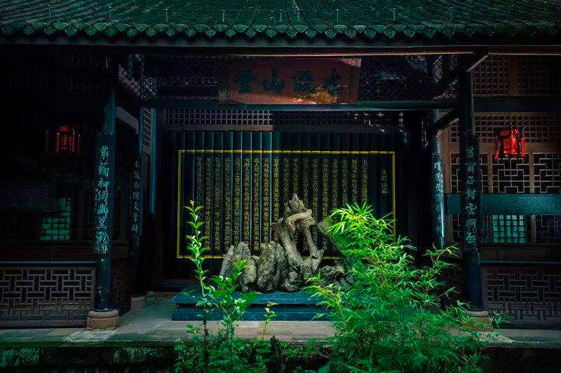 杜甫草堂是再现杜诗意境的画卷,碧水汤汤,古柏森森,集纪念祠堂格局和诗人旧居风貌为一体的草堂,在庄严肃穆中蕴含勃勃生机,亭台楼阁坐落于庭院,尽显古韵悠悠,门匾楹联掩映于浓荫,深藏历史底蕴