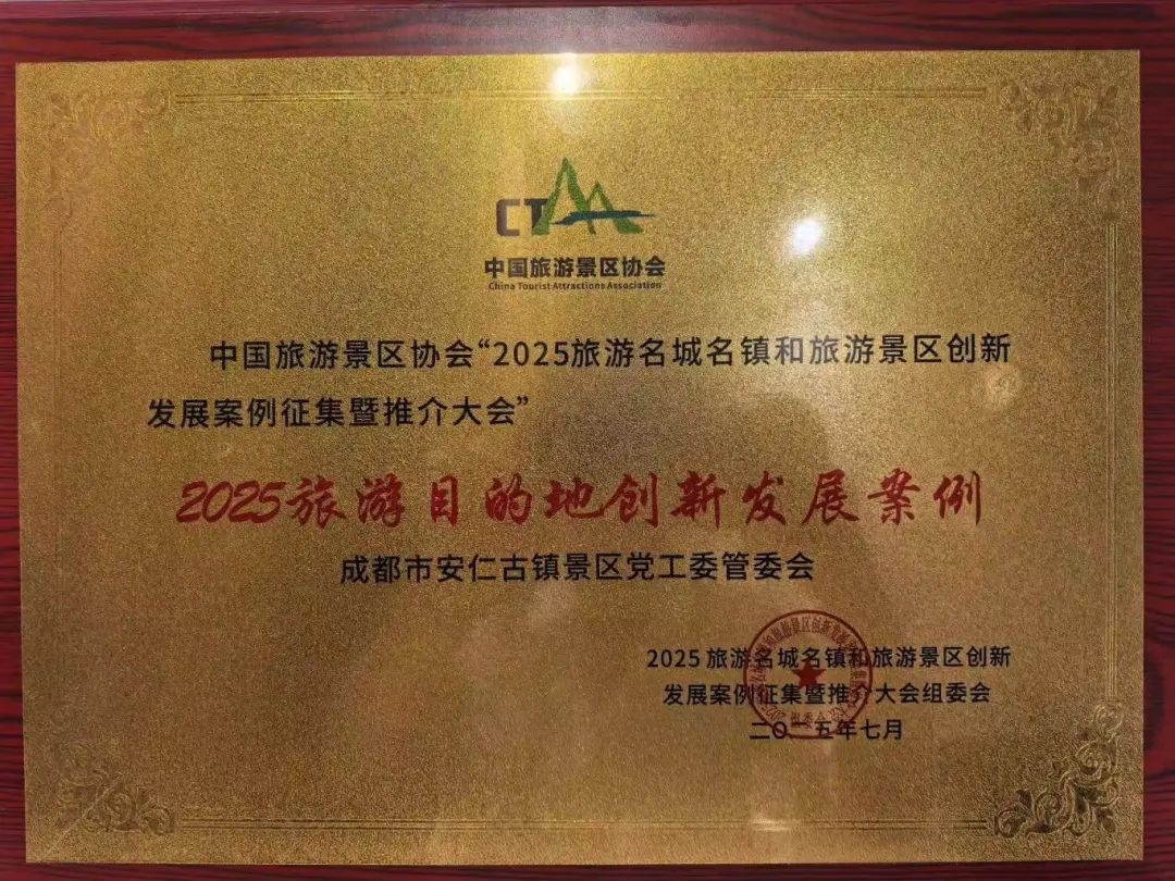 2025年7月5日,由中国旅游景区协会主办的“2025旅游目的地创新发展案例”授牌仪式在北京举行。成都市安仁古镇景区凭借在文化保护、空间优化、产业融合等方面的持续探索和卓越实践,荣获 2025 旅游目的地创新发展案例。