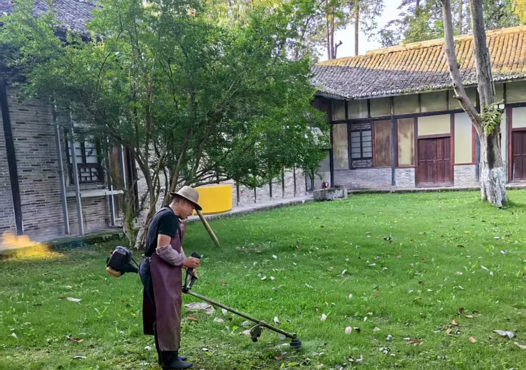 (1)定期修剪草坪和绿植,清理枯枝落叶