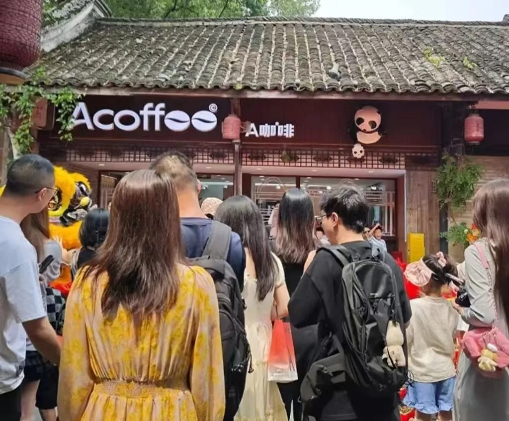 A咖啡自2021年诞生于成都以来,便以“创意精品咖啡”为定位,迅速崛起为行业黑马。其独特的“混搭咖啡”理念,将现磨咖啡与手工冰淇淋创新融合,推出多款爆品,如“熊猫玩拿铁”“地球漂流记”等,风靡全网。2024年,A咖啡与文旅集团达成战略合作,入驻5A景区安仁古镇,成为古镇文旅消费场景中的重要组成部分。店铺设计融合现代美学与古镇文化底蕴,为游客提供兼具品质与美感的休闲体验,成为古镇打卡新地标。