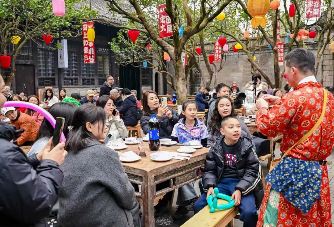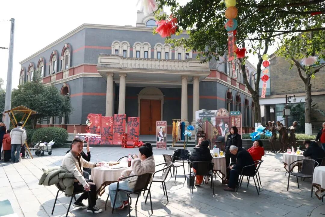 此外,春节期间邑旅公司在刘元琥公馆举办的"公馆家宴 · 茶餐秀",福禄寿喜财五福巡游表演将新春气氛拉满;