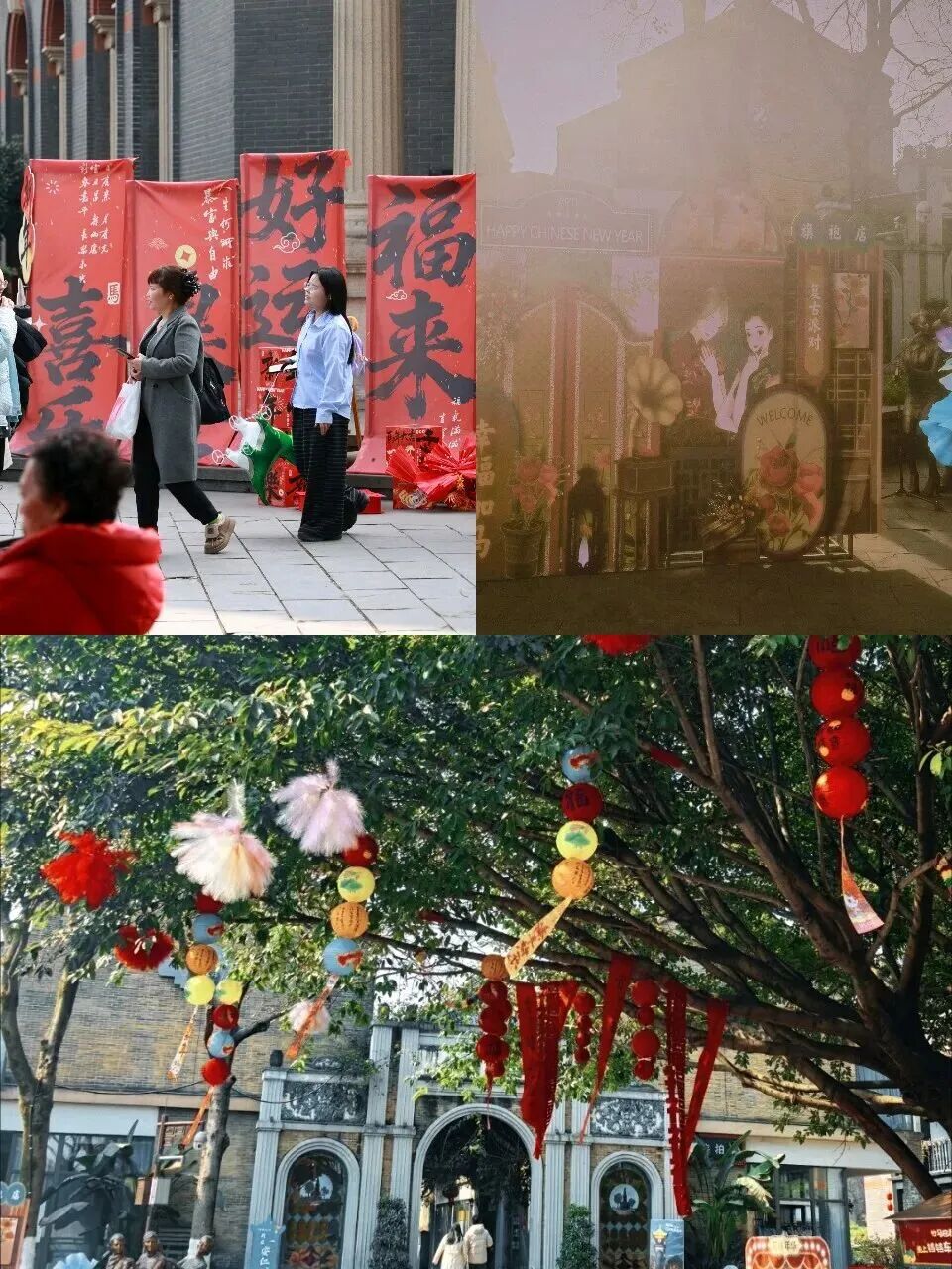 春日的暖阳透过灯笼洒在青砖黛瓦上,公馆老街的红灯笼随风轻摇。德门广场公馆窗影打卡点成为最受欢迎的取景框。