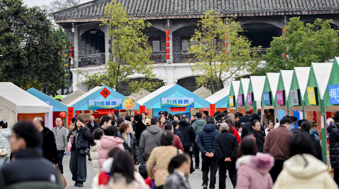 德门仁里广场新年市集区人声、茶香、墨香、甜香交织,构成一幅和谐唯美画卷,游人漫步其间,恍若步入一场沉浸式的年味雅集。